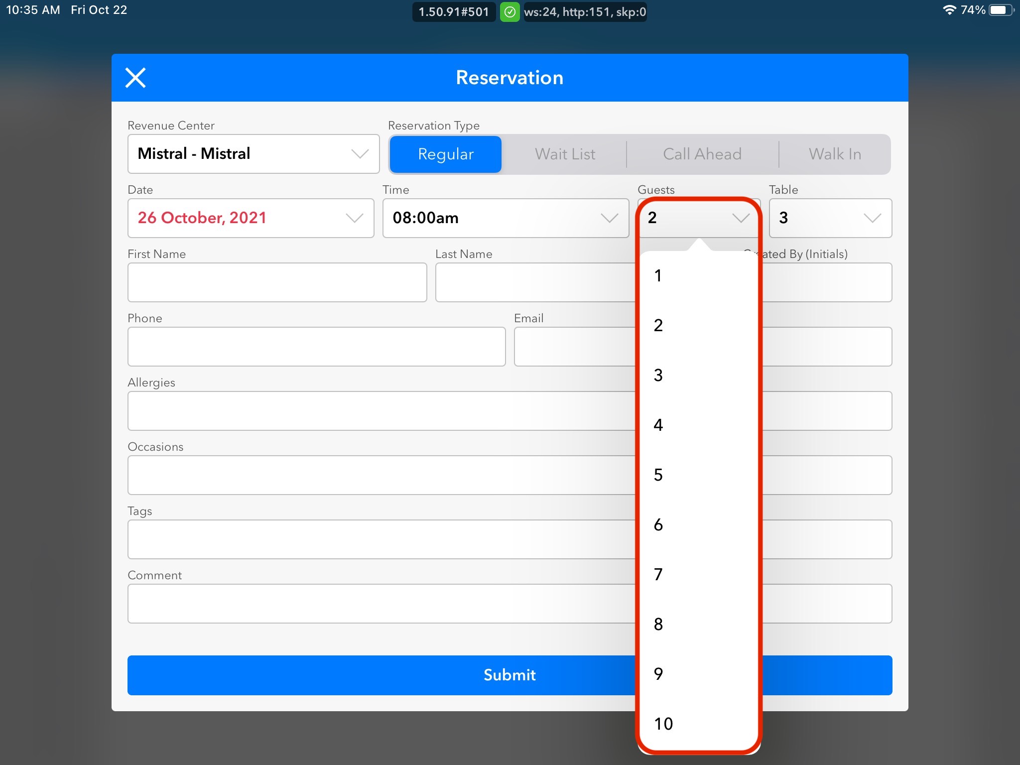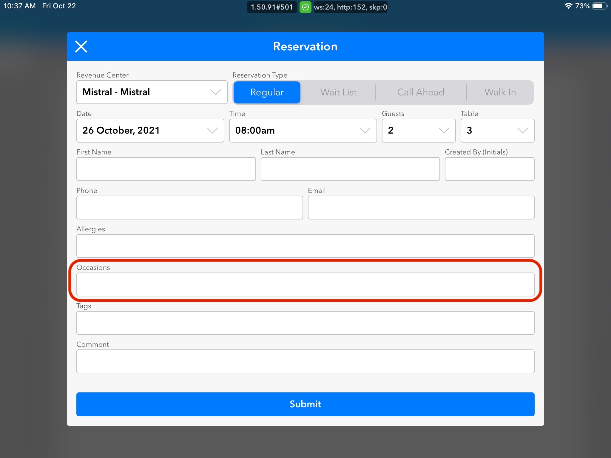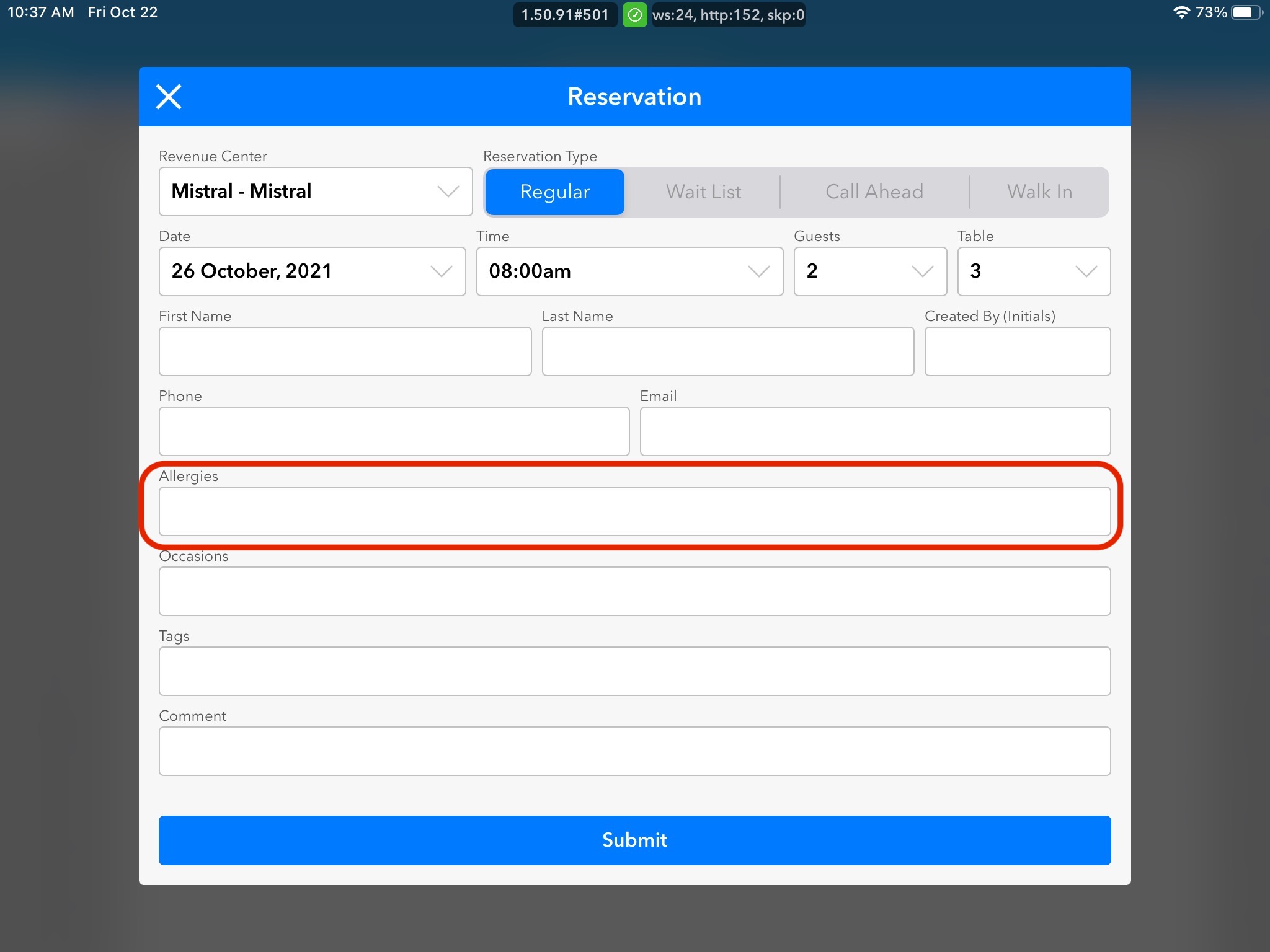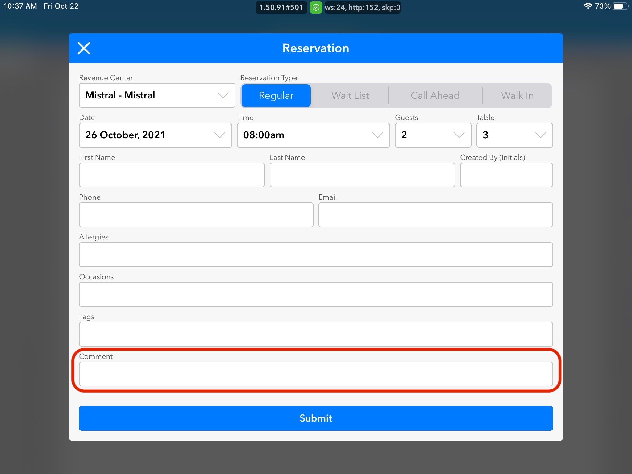 9. Add in any additional Comments that either the Guest asked to include, or you would like the restaurant staff to know about.