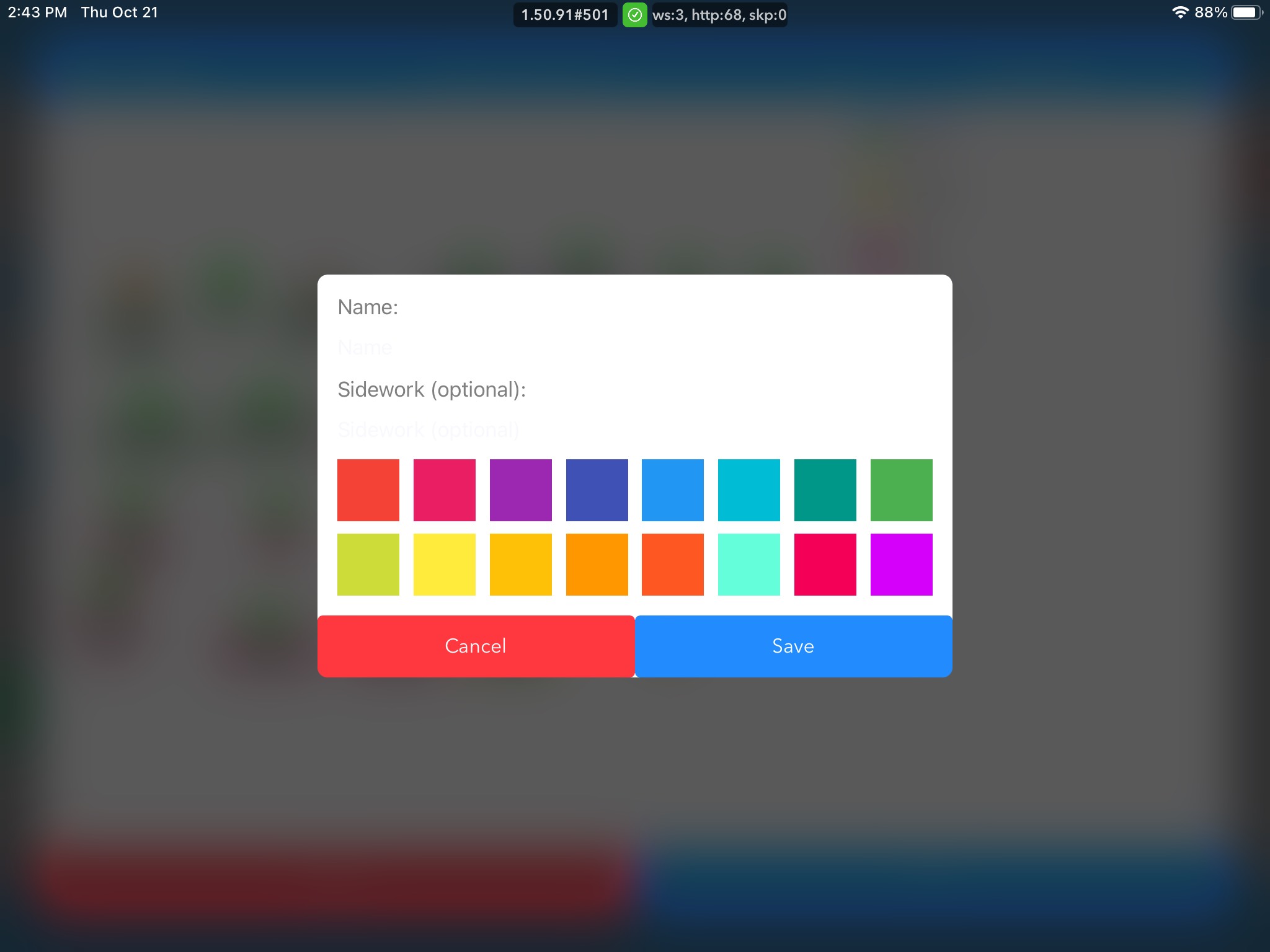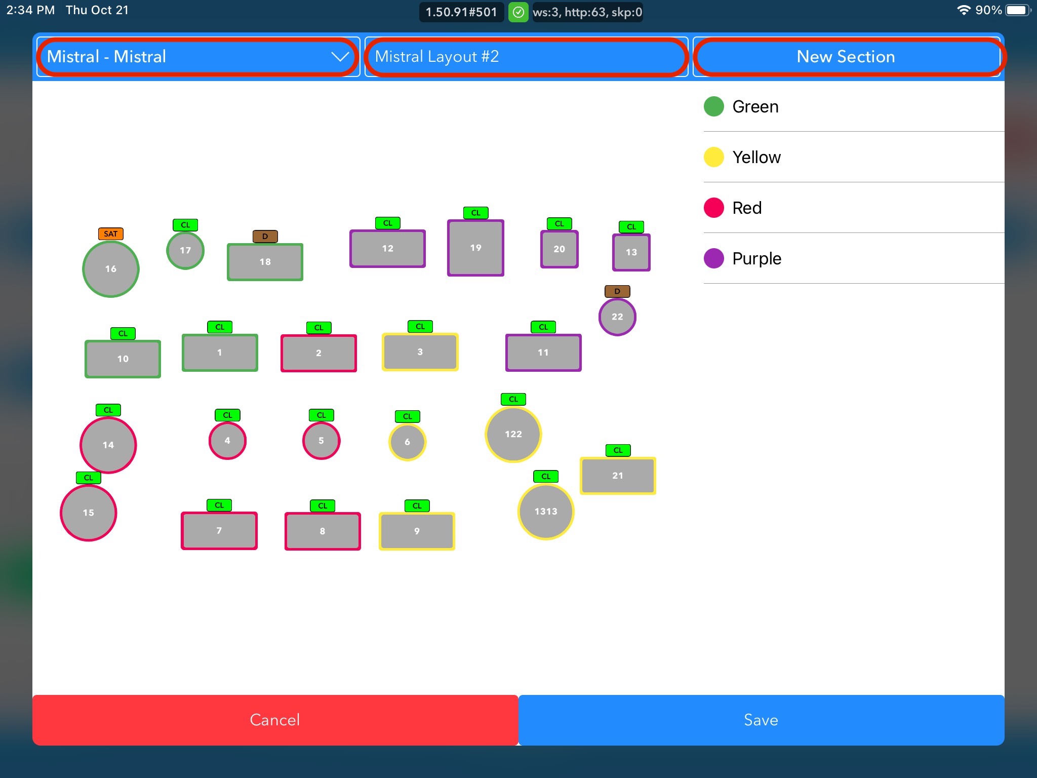 If you do want to create a new section, once you click on this, a popup will give you color options to help keep sections organized in-order to obtain clear division. You can name the sections, as well as note side work that should be done if in this section. To apply colors to the sections, you should just click on the color you wish to apply and click on the table you wish to apply it to. You should save the adjusted or new floor plan once you are done making changes.