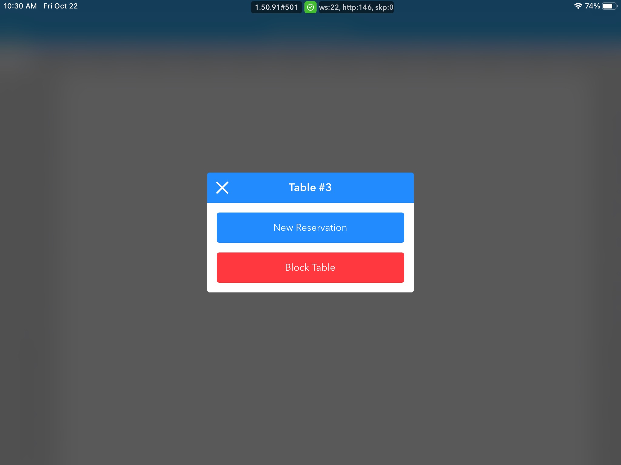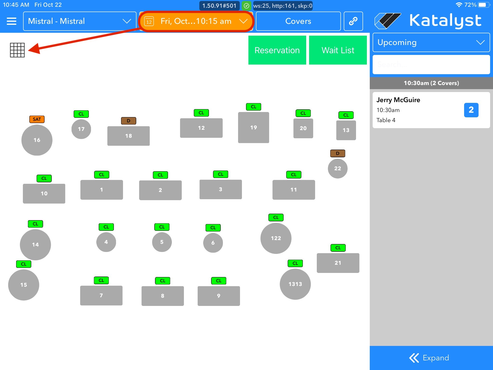 1. Select the correct date you wish to block a table using the date picker on the floor-plan homepage, then tap the Grid icon in the top left.