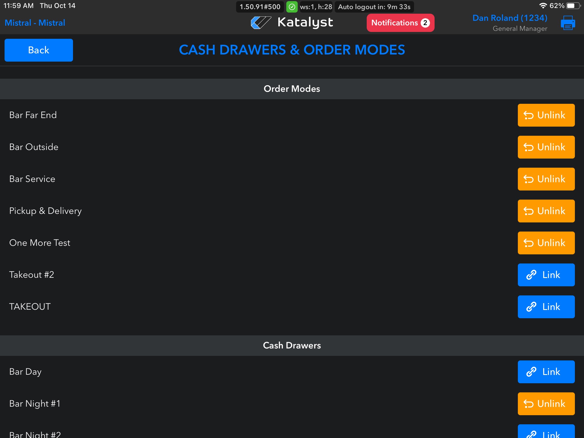 From Cash Drawers & Order Modes, you're able to link and unlink modes and cash drawers. In doing so, this makes order modes and cash drawers accessible to the designated terminal.
