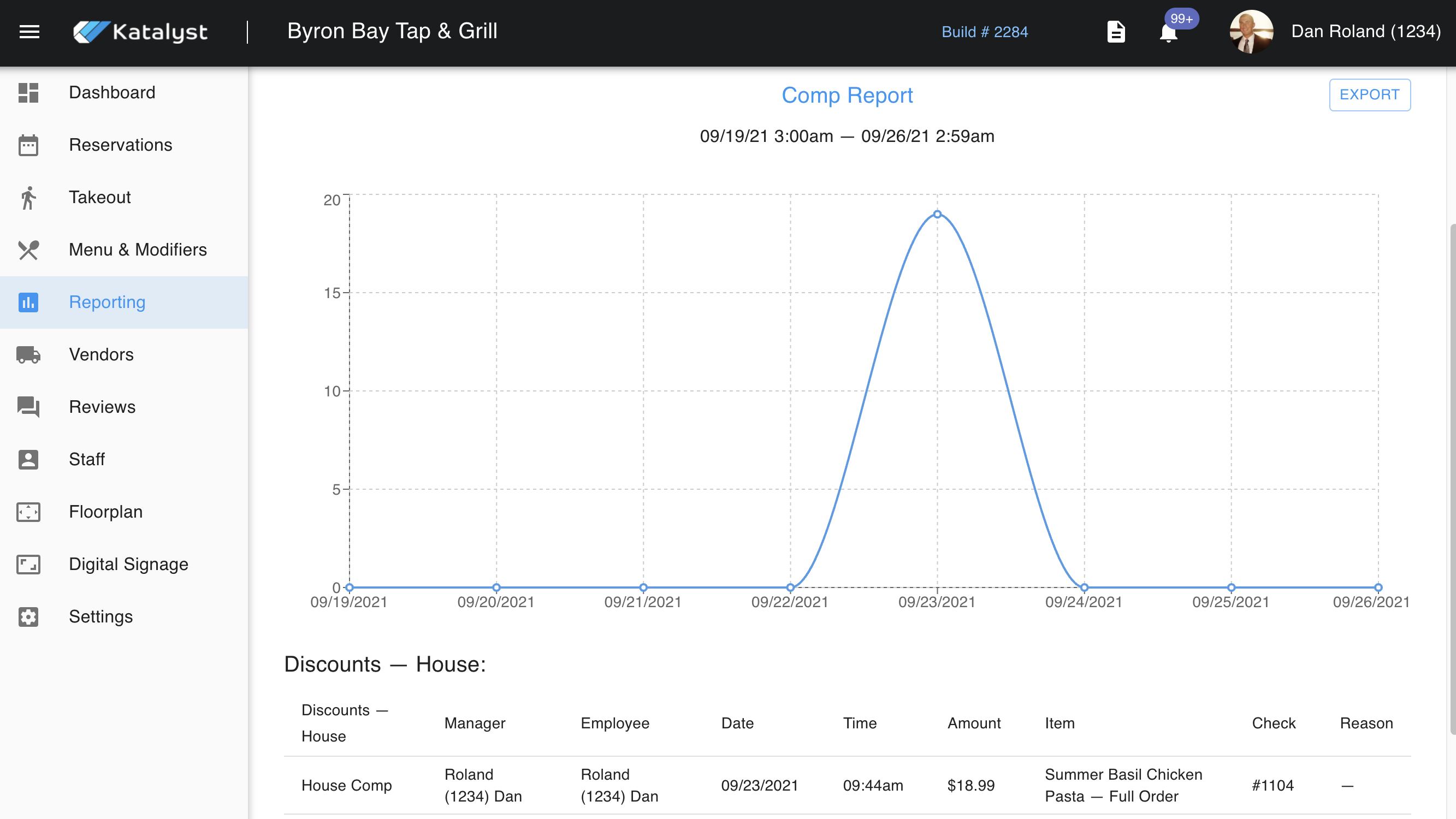 A Comp Report creates an audit trail for comps and discounts. This function will allow you to see how many comps and discounts are being used. For example, if you wanted to check if a new promotion has been successful, you could filter out a report on just the promotions to view the data.