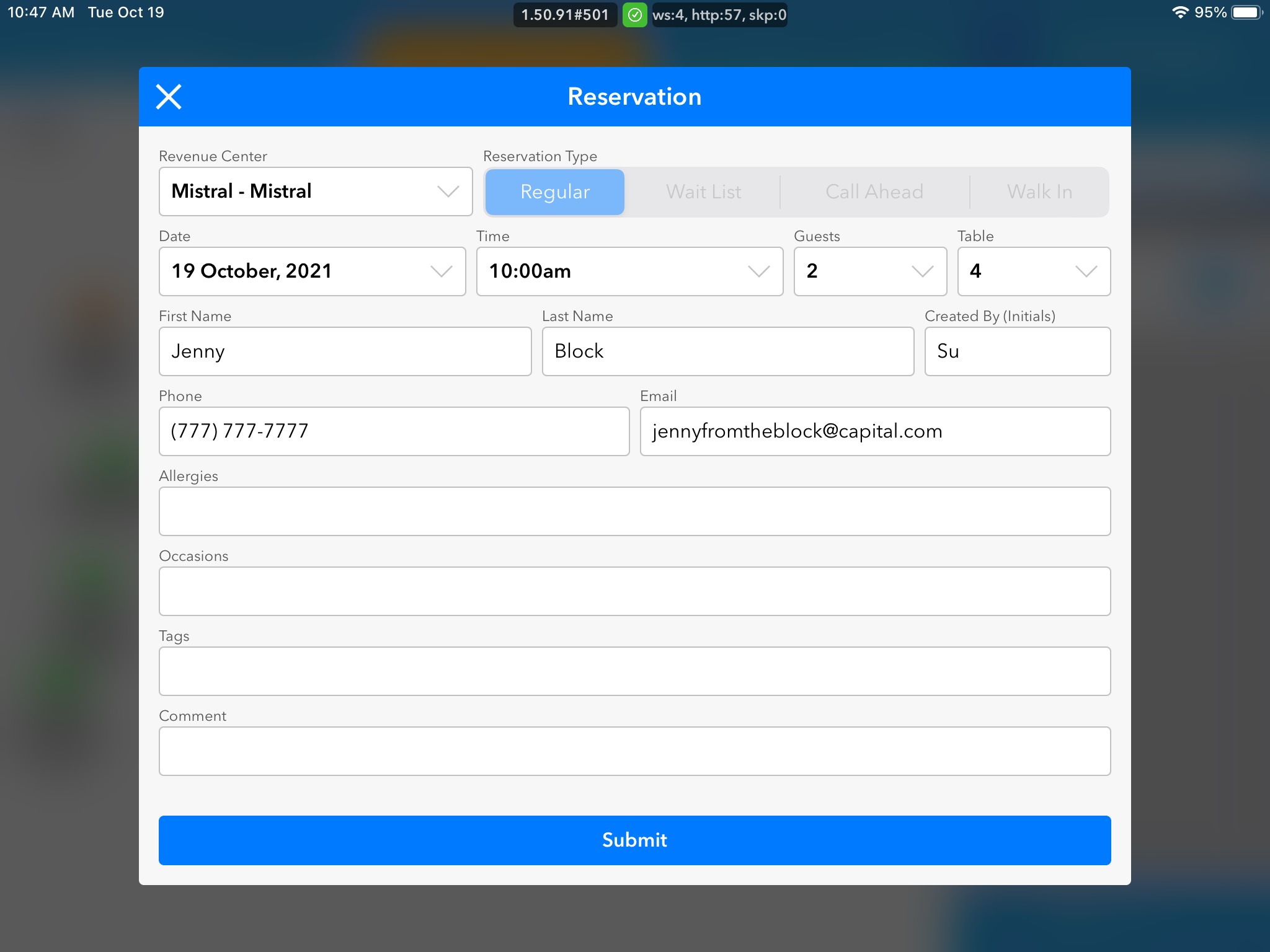 A pop-up that looks exactly as though you are creating a new reservation will appear. Make any changes and click Submit to save.
