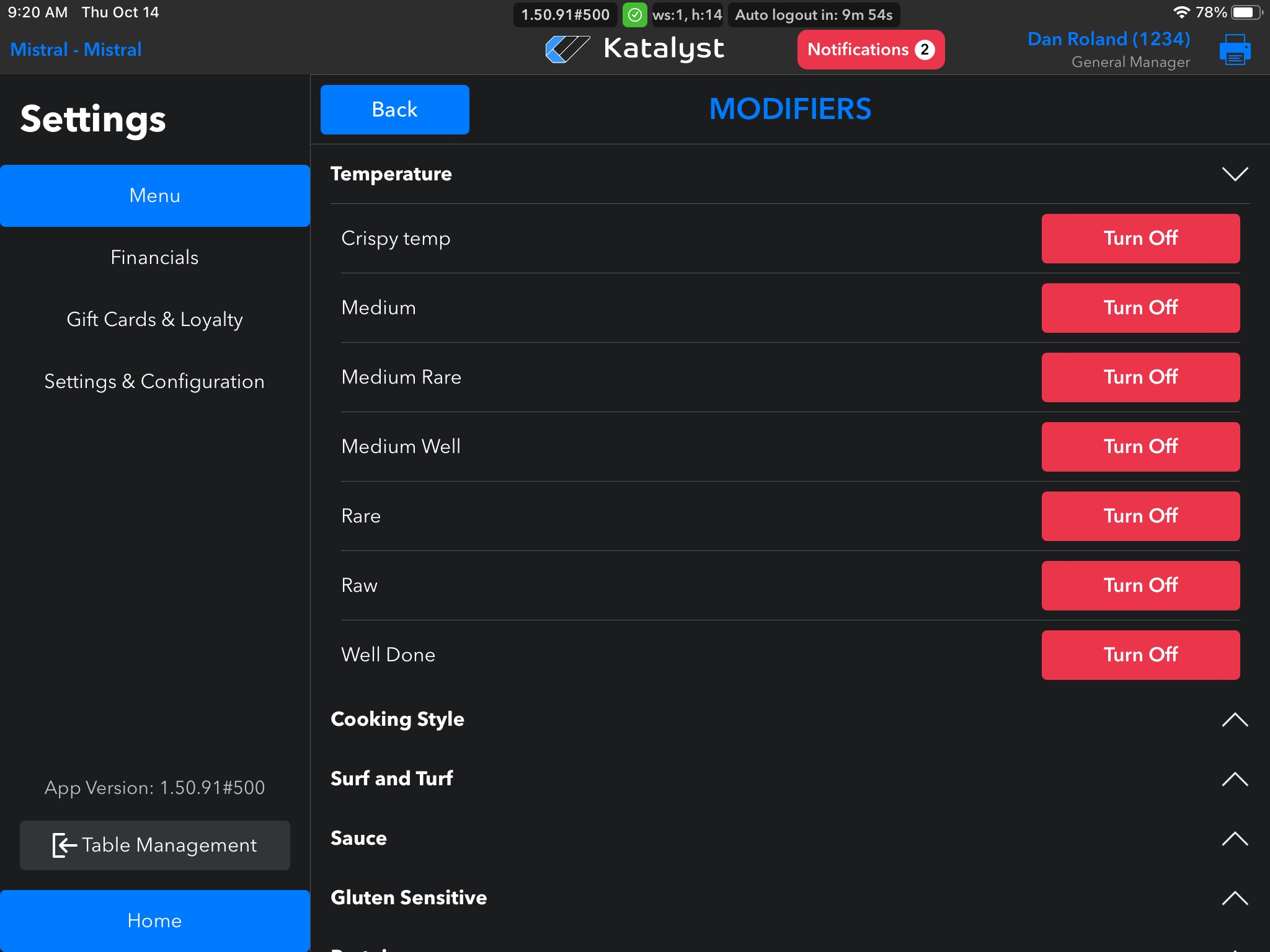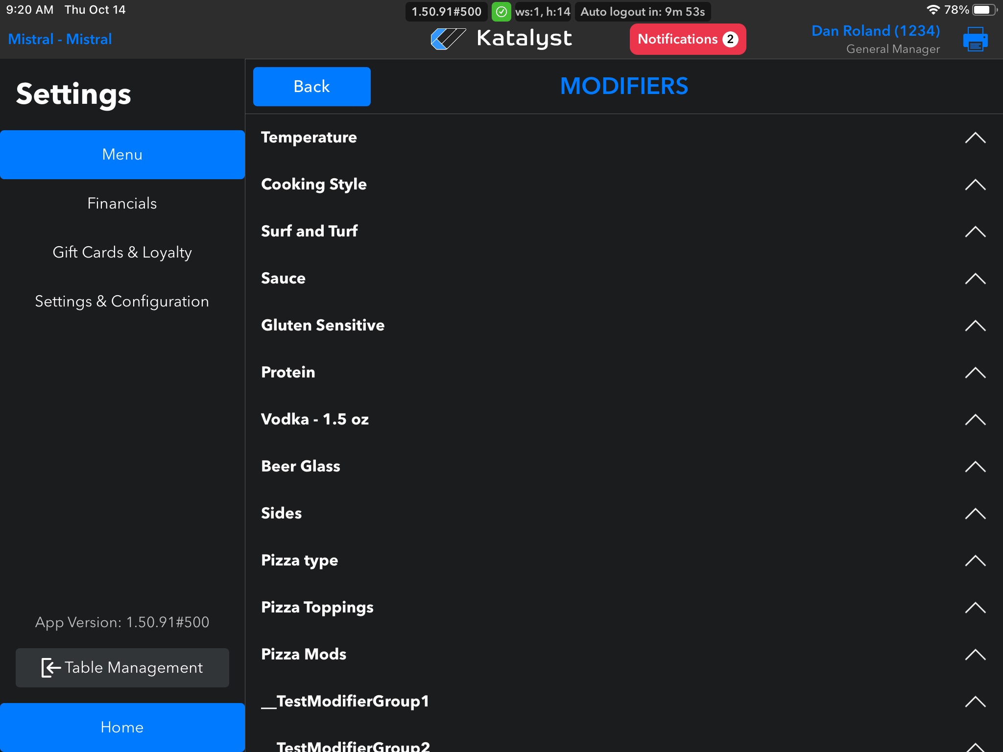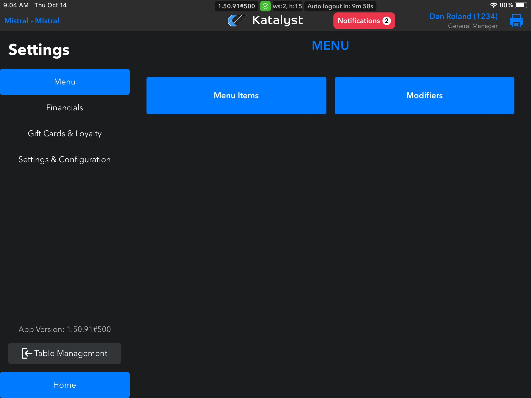 From the menu settings, you can make edits to Menu Items and Modifiers. This will be the go-to page if an item needs to be 86'd as well.