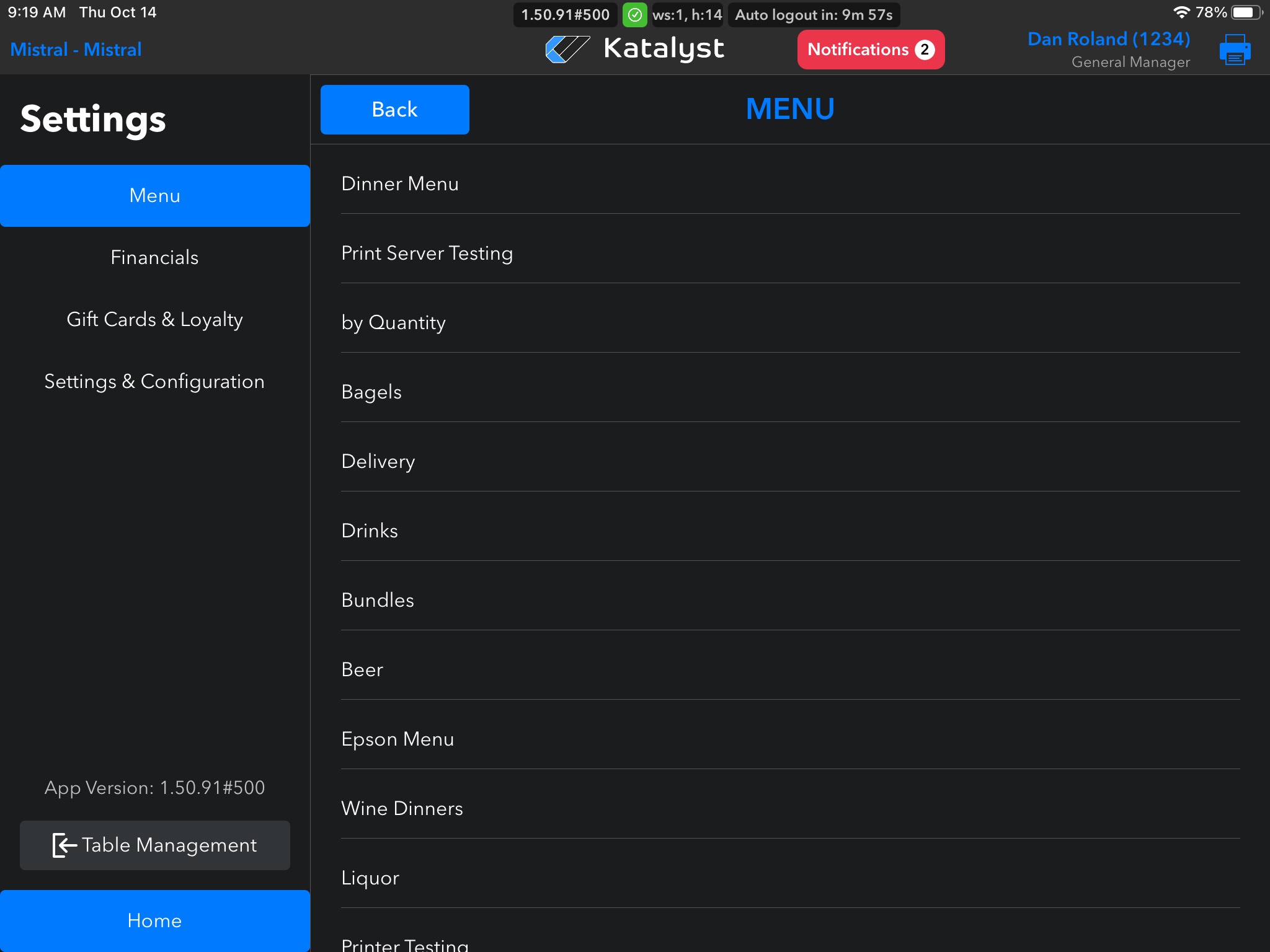 Clicking into Menu Items will show you all menu options in the order that appear in the POS.