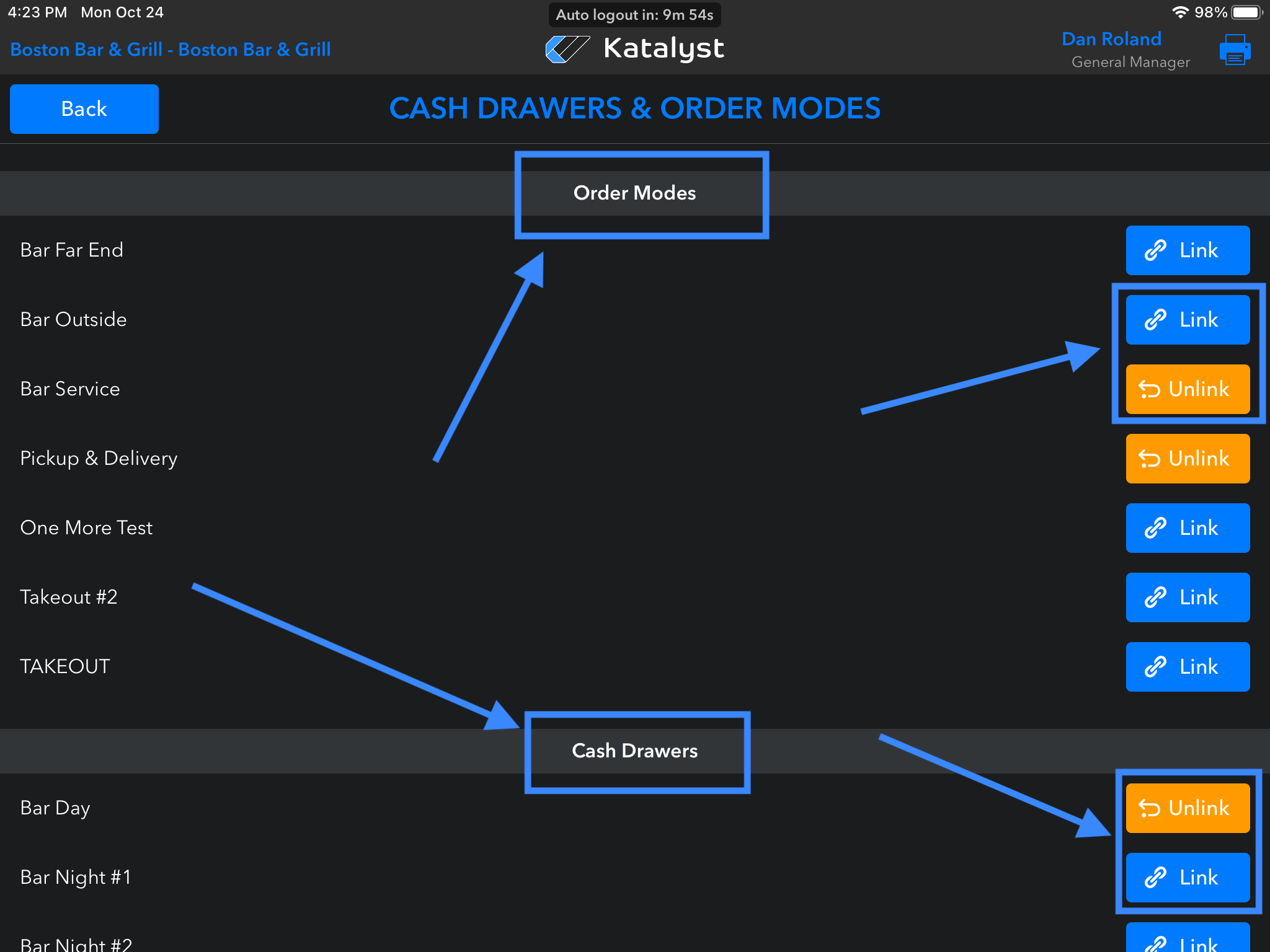 In the iPad app, go to Settings > Settings & Configurations > Cash Drawers & Order Modes. Make sure that the correct cash drawers are linked.