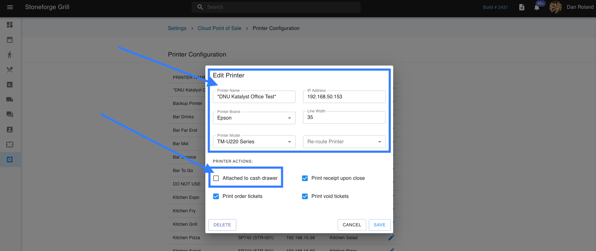 Go to your Admin portal and go to Settings > Cloud Point of Sale > Printer Configuration. Then click on the blue edit pencil of the printer you are checking and make sure that it is attached to the correct cash drawer.