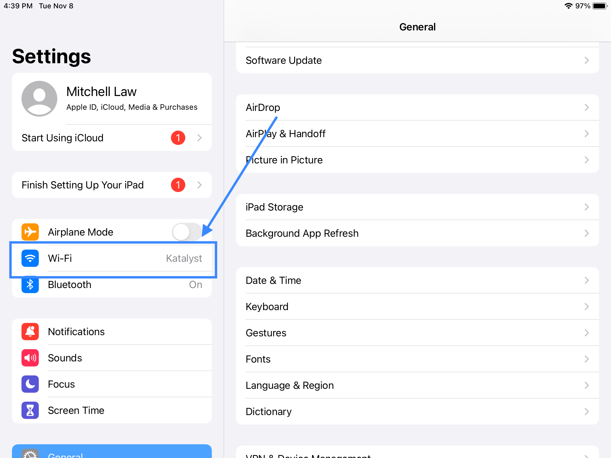 - Check to make sure the iPad is connected to the correct WiFi network (See above screenshots for reference)