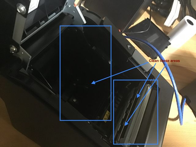 c. Check to make sure there is (the correct type of) paper and no paper bits inside the printer itself (blow out the pieces if necessary)