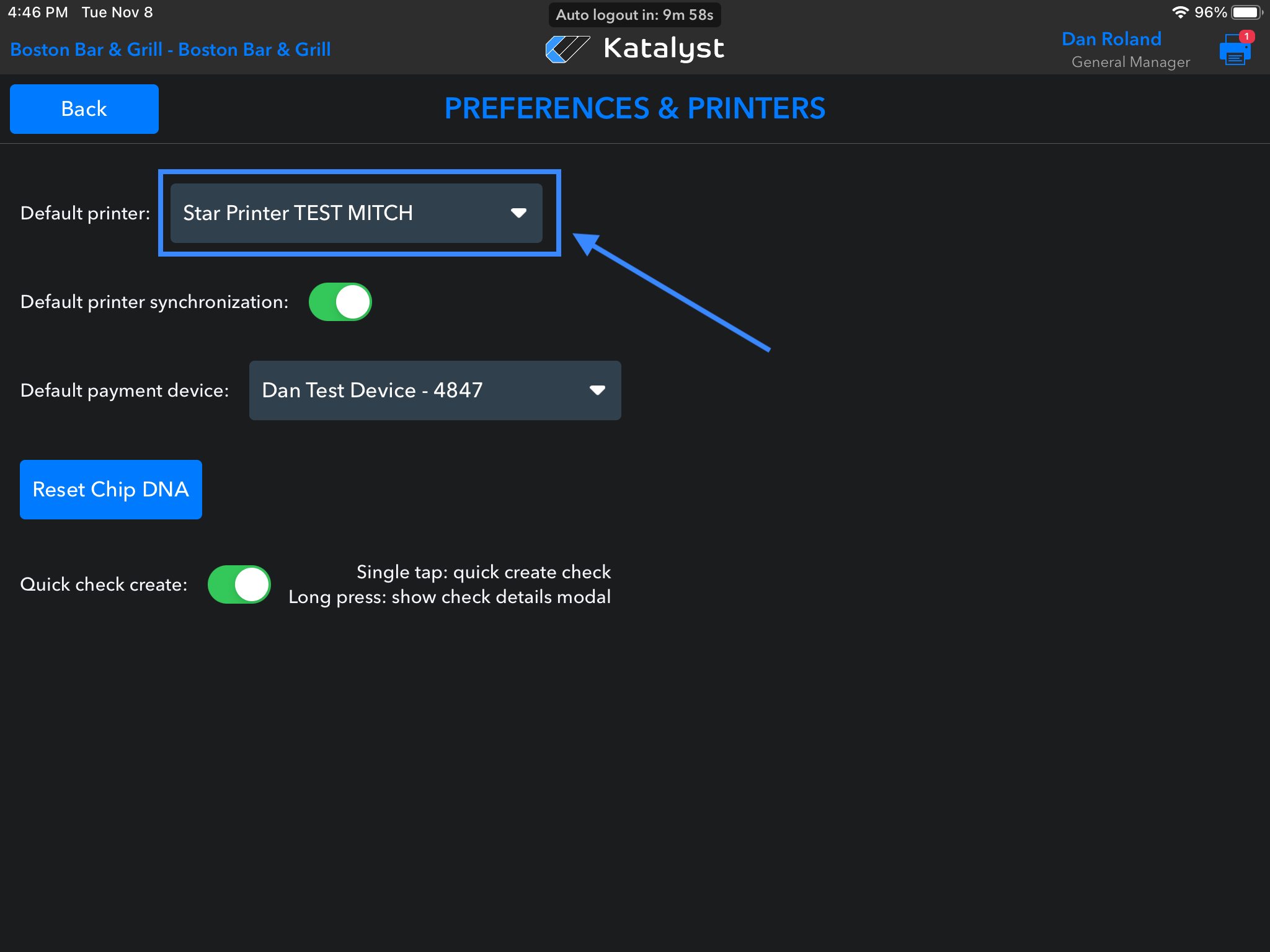 - Check on iPad that the correct Guest printer is selected in: Settings > Settings & Configuration > Preferences & Printers > Default Printer dropdown