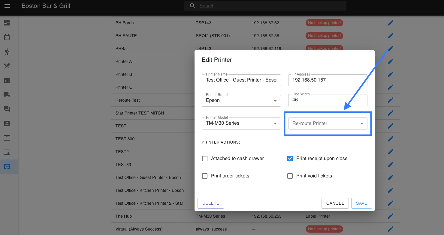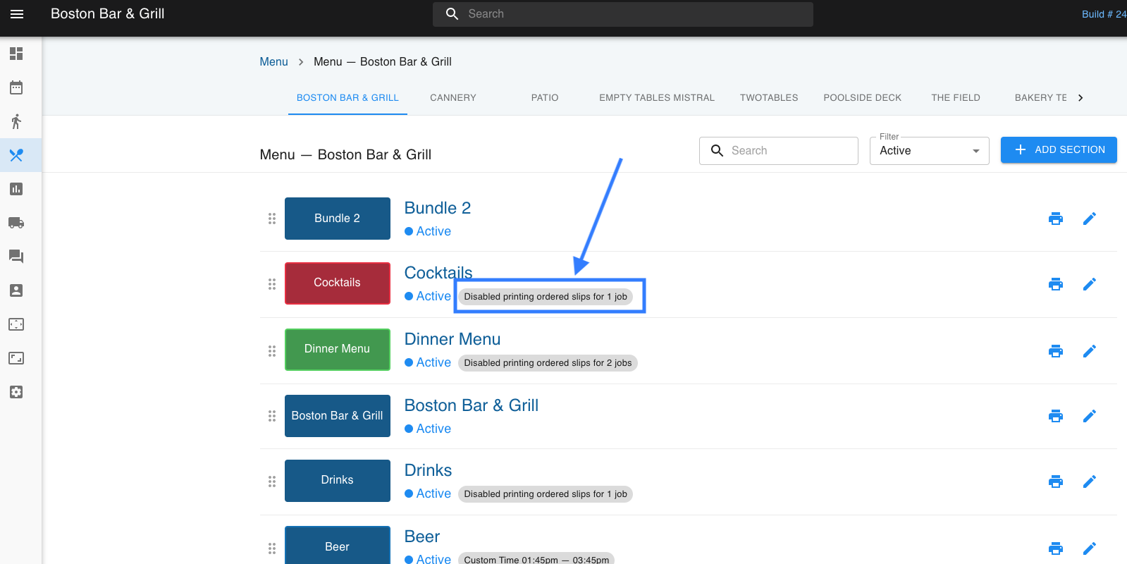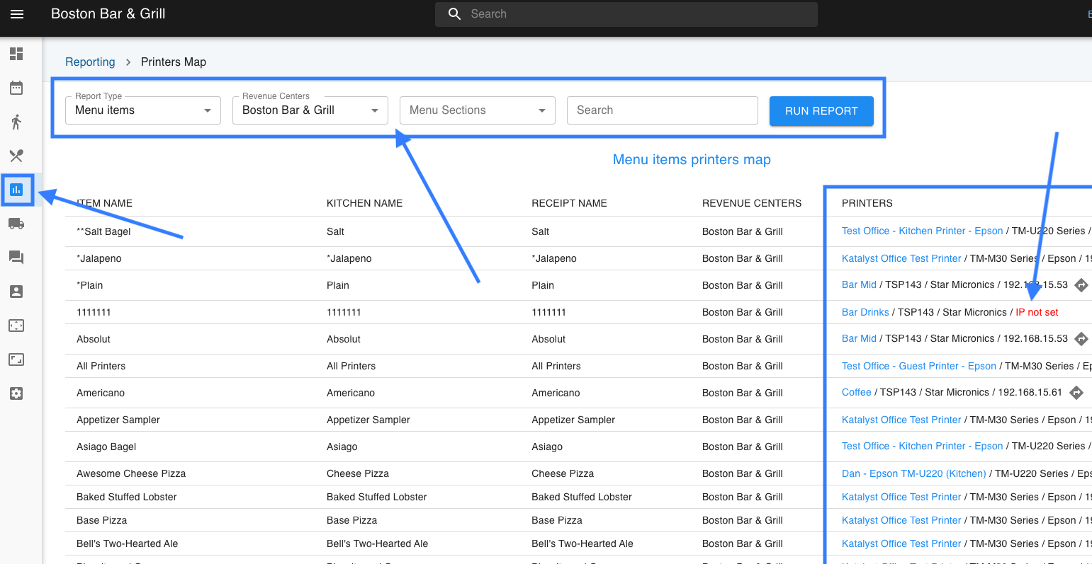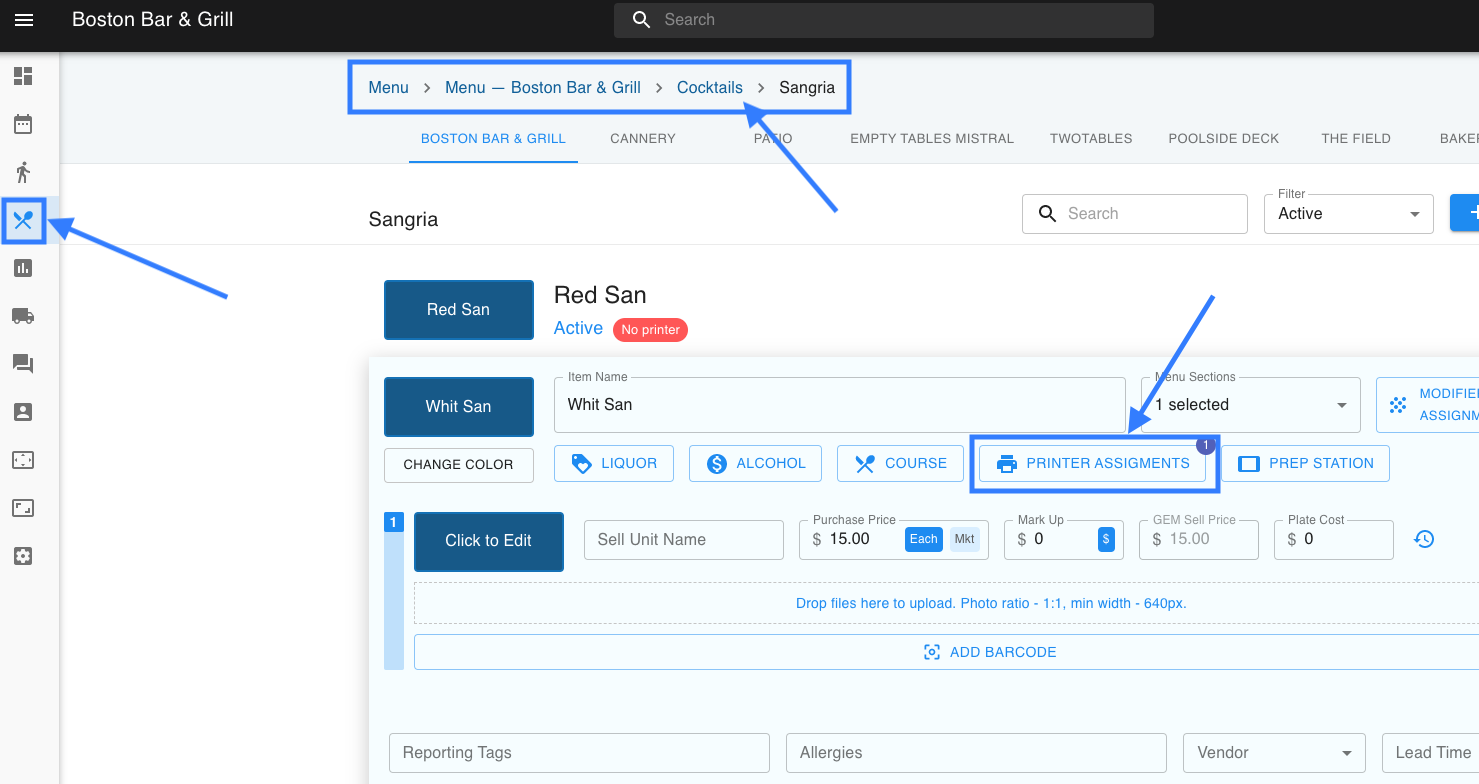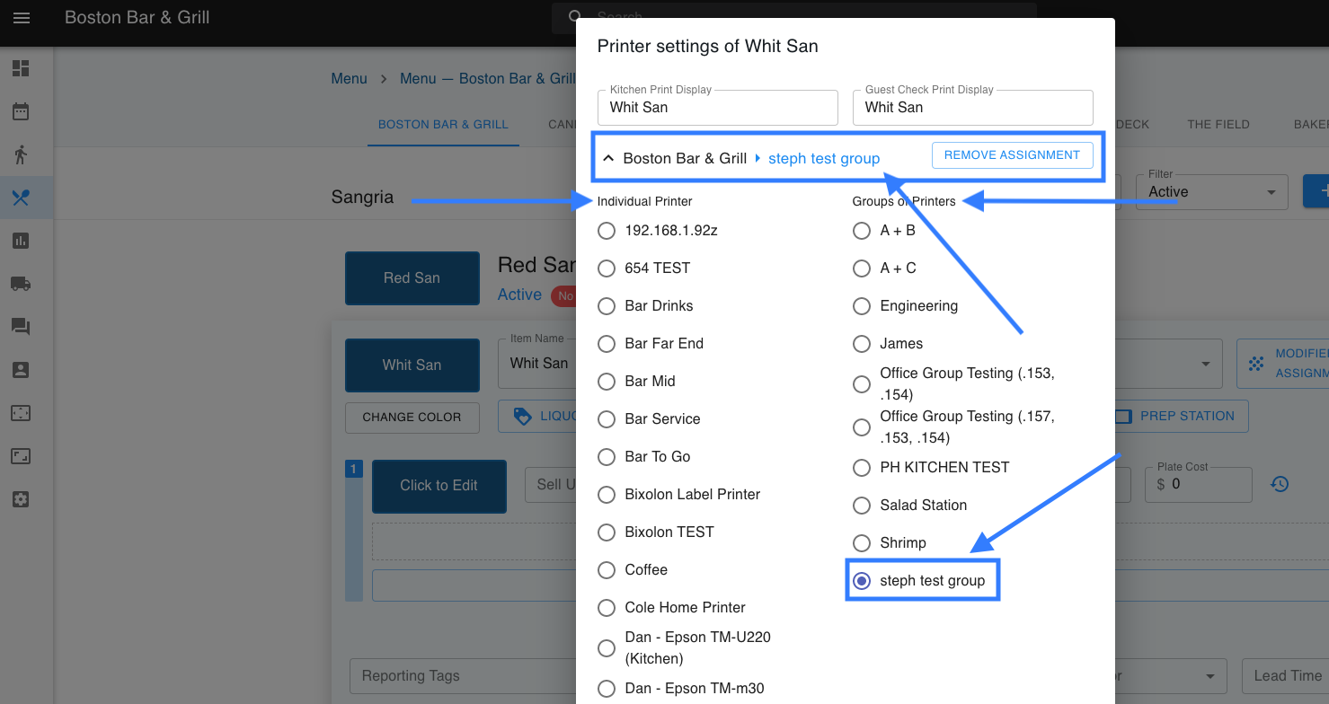 d. In your Restaurant web account, check to make sure the items have the correct Printer Assignment