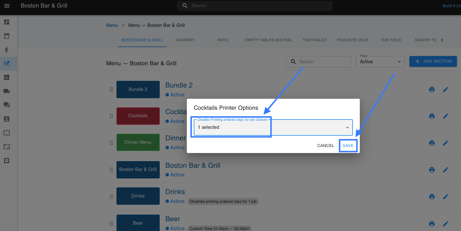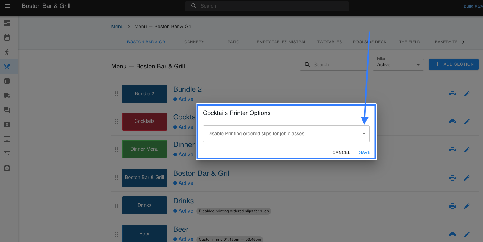 - Another place to look is in job classes. Some job classes will be set up to not print in certain places. For example, if a bartender doesn't need a bud light to print because they will just go get the beer, they would not be set up to print. Make sure job classes are set up correctly through menus