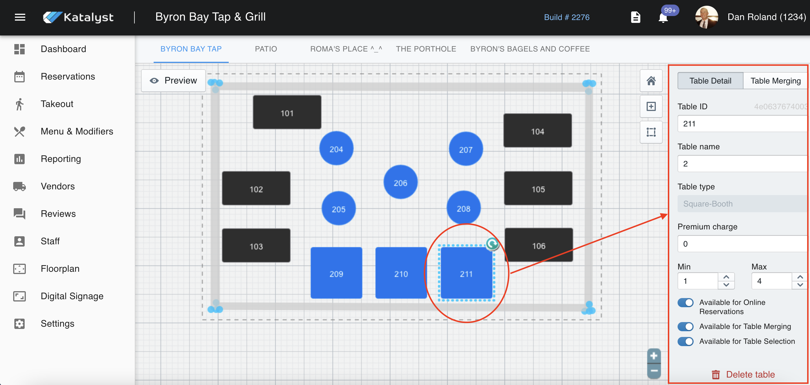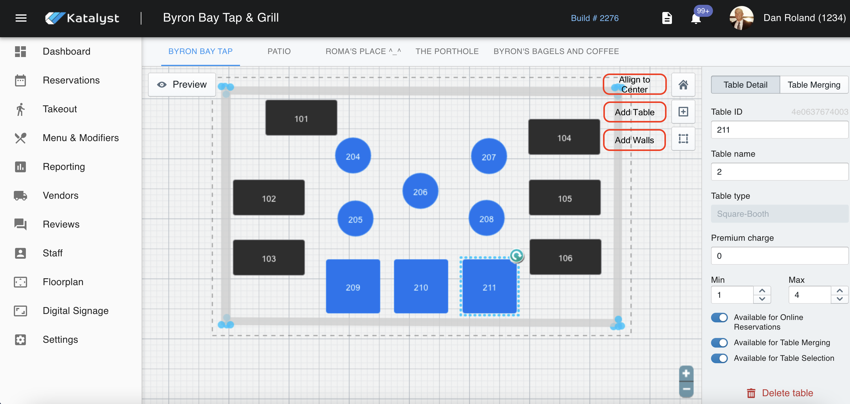 If you want to change the layout, you can go in and adjust this by clicking and dragging tables. You can also add walls and tables if your restaurant has undergone major changes.