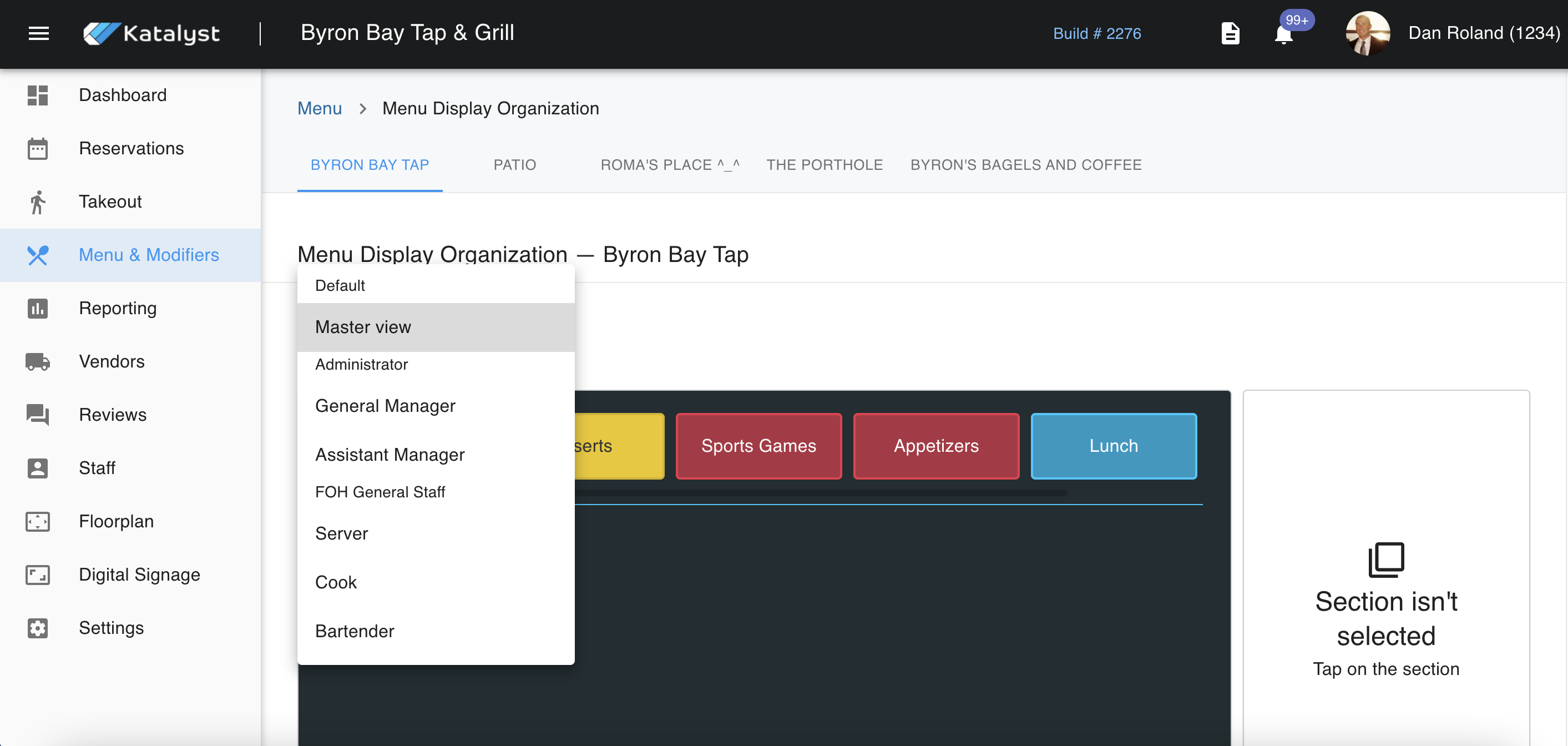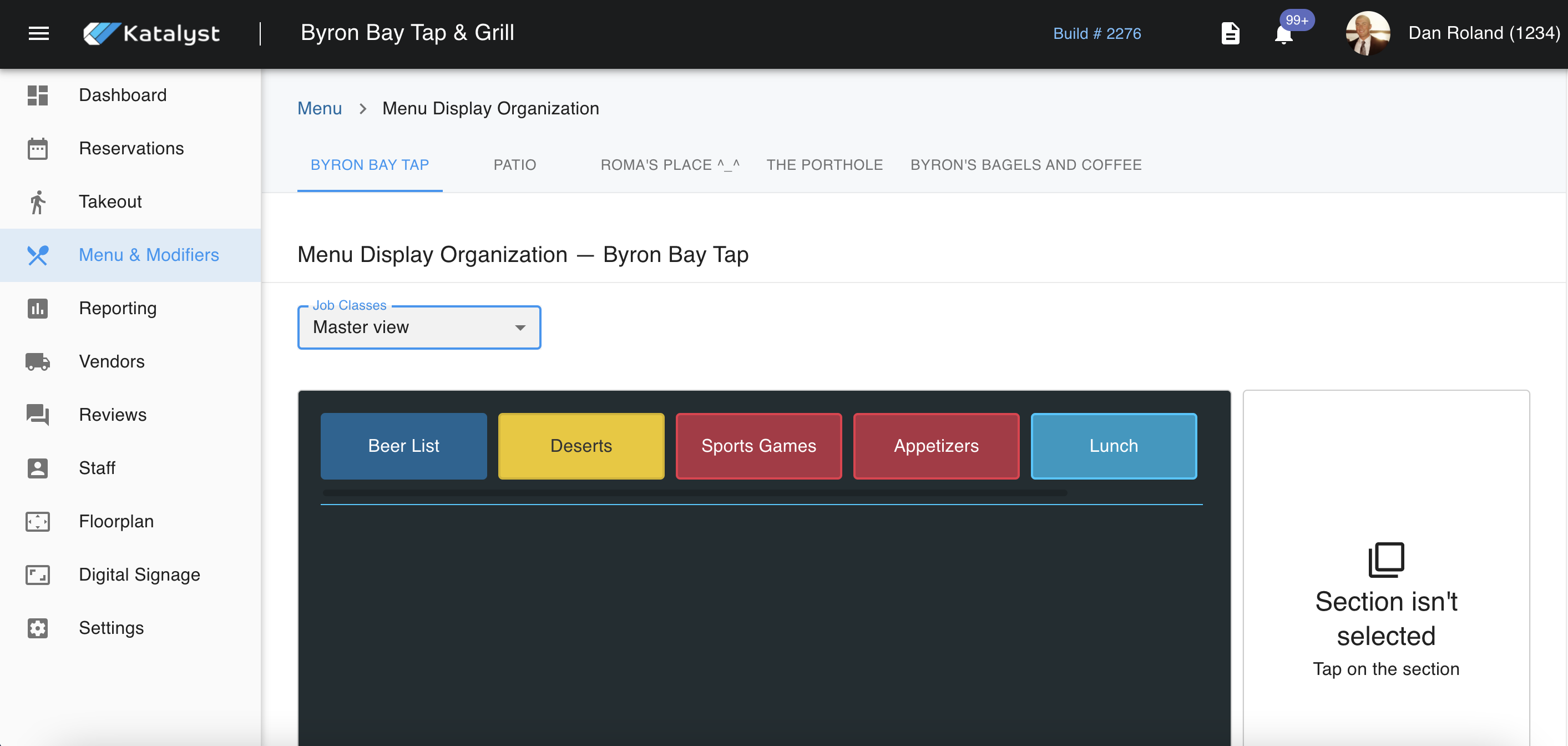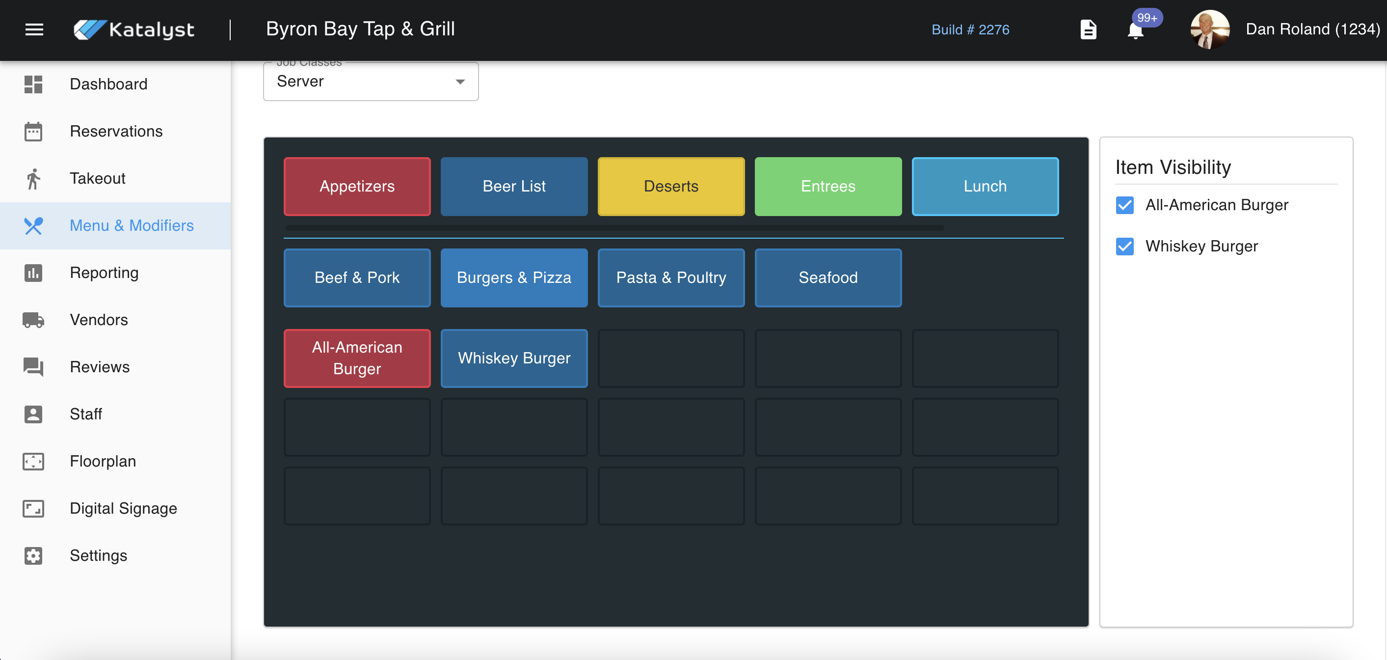 From the Menu Display Organization tab, you can view your menu as it appears in the live POS system. If you make changes to your menu organization, make sure you refresh your POS to reflect the new changes (log out and log back in).