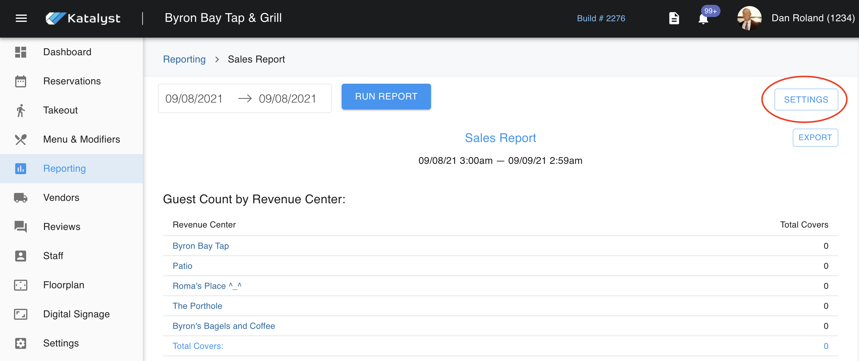 The settings will enable you to edit what time batched reporting should take place and customize what sales categories you would like on your daily sales report.