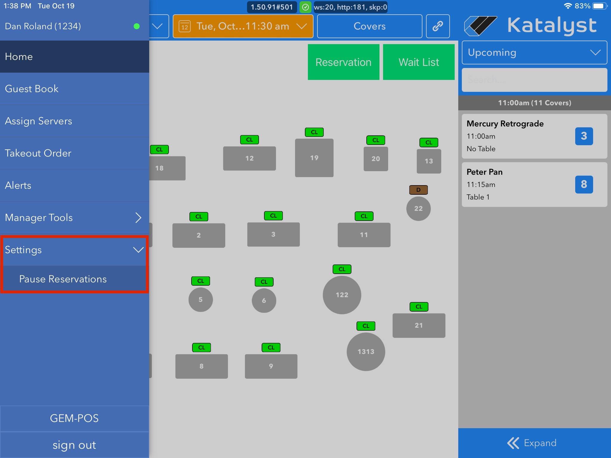 Once on this menu, you will click into the settings options, and then pause reservations. This will allow for the pop-up screen to appear.
