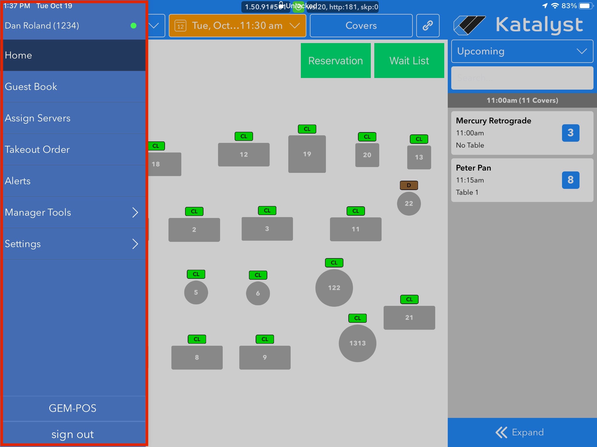 If you find yourself in the weeds and need to pause online reservations, you can do so from the POS table management screen. You can do this by either tapping on the hamburger or sliding from the left to bring out the menu.