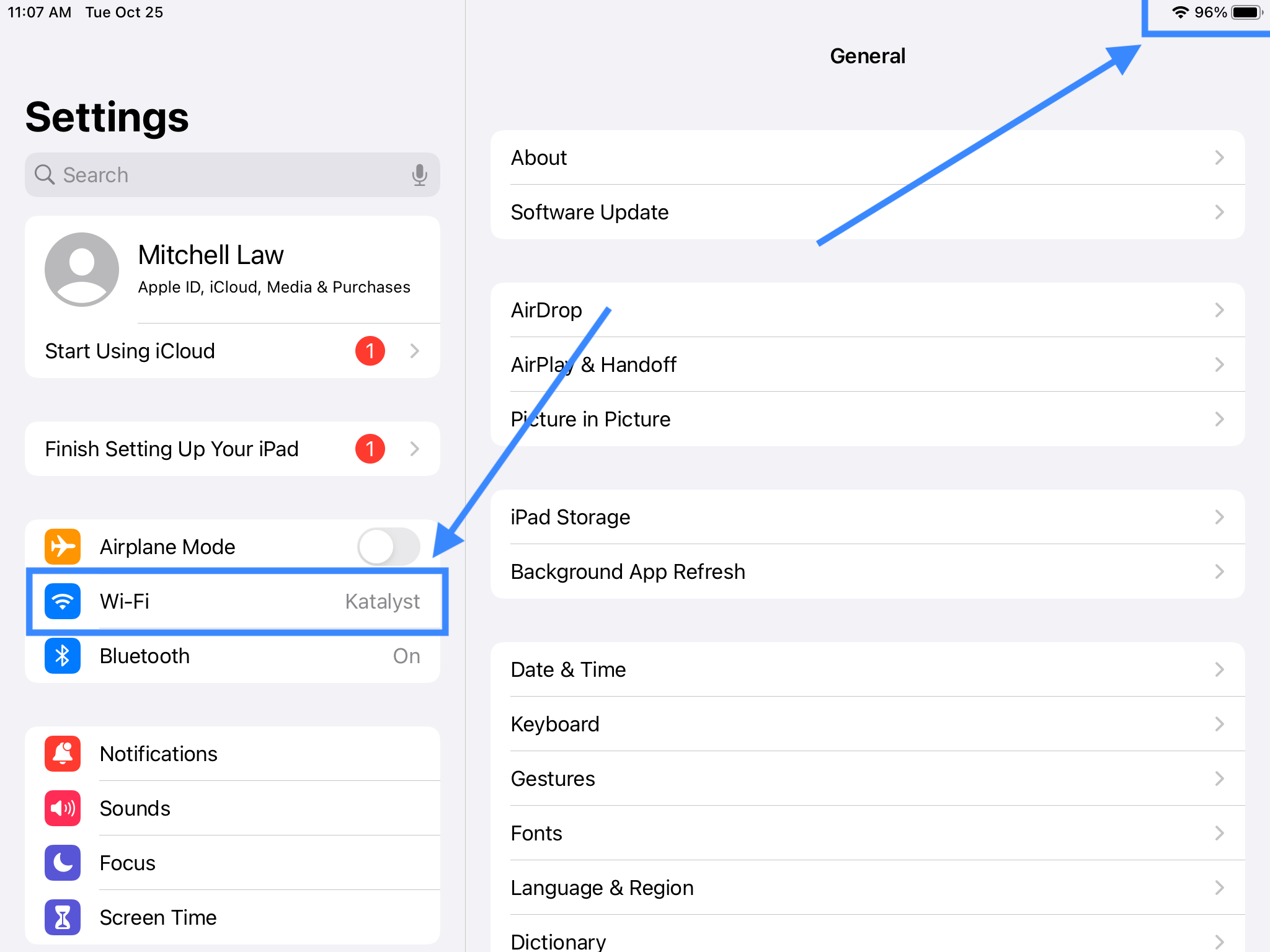 - Make sure the correct wifi is connected on the iPad