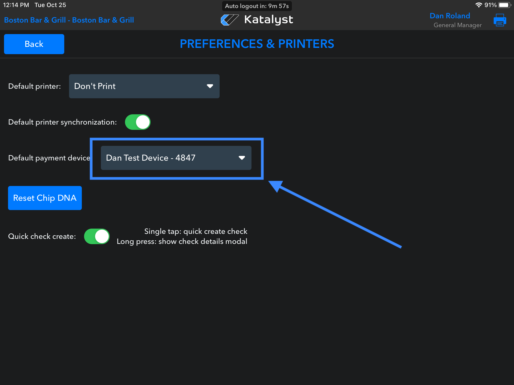 Check in the Katalyst POS Settings that the correct device is selected in Settings > Settings & Configuration > Preferences & Printers > Payment Device Dropdown. Tap into each and select the corresponding device - even if it's already selected, tap again